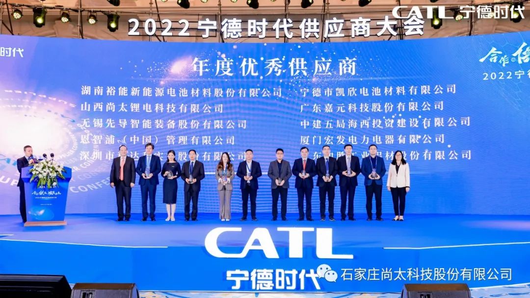 在大会现场,宁德时代为优秀供应商颁发了“年度优秀供应商”以及“技术创新奖”、“质量卓越奖”、“最佳交付奖”、“可持续发展推进奖”等奖项。公司全资子公司山西尚太锂电科技有限公司作为负极材料行业唯一的供应商,获得了份量最重的“年度优秀供应商”大奖。